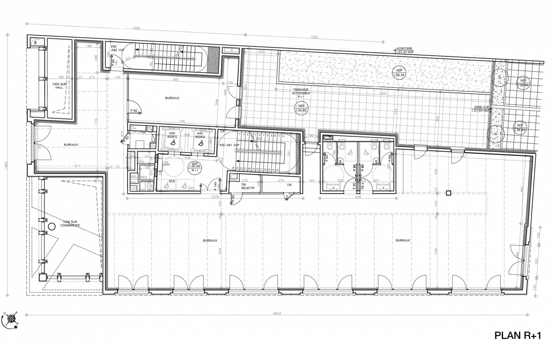 Surface : Bureaux 2 200 m², Commerces 478 m²