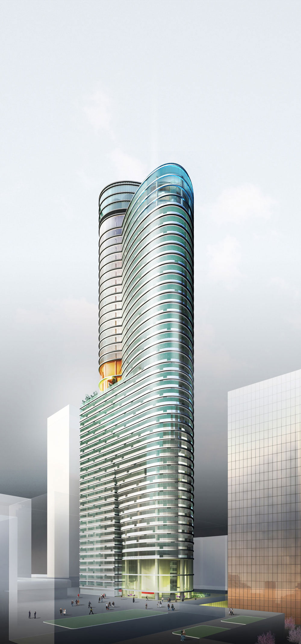 Le bâtiment, cerné par les tours Manhattan, Véritas et CB16, pose la problématique de l’obsolescence des immeubles tertiaires de La Défense et d’une intervention la plus efficiente possible dans ce site fortement contraint. En retrait du Parvis principal, il s’agit d’un parallélépipède orienté selon la trame originelle du quartier d’affaires. L’intervention propose une volumétrie dynamique tournée vers la Grande Arche autant que vers le Paris historique, articulant le volume initial de deux volumes oblongs de 49 et 53 niveaux pour ouvrir un large parvis au niveau de la dalle, réorganiser les circulations verticales, créer une terrasse sur la toiture existante et enfin aménager un skylobby et une terrasse panoramique dédiée aux derniers niveaux de direction.