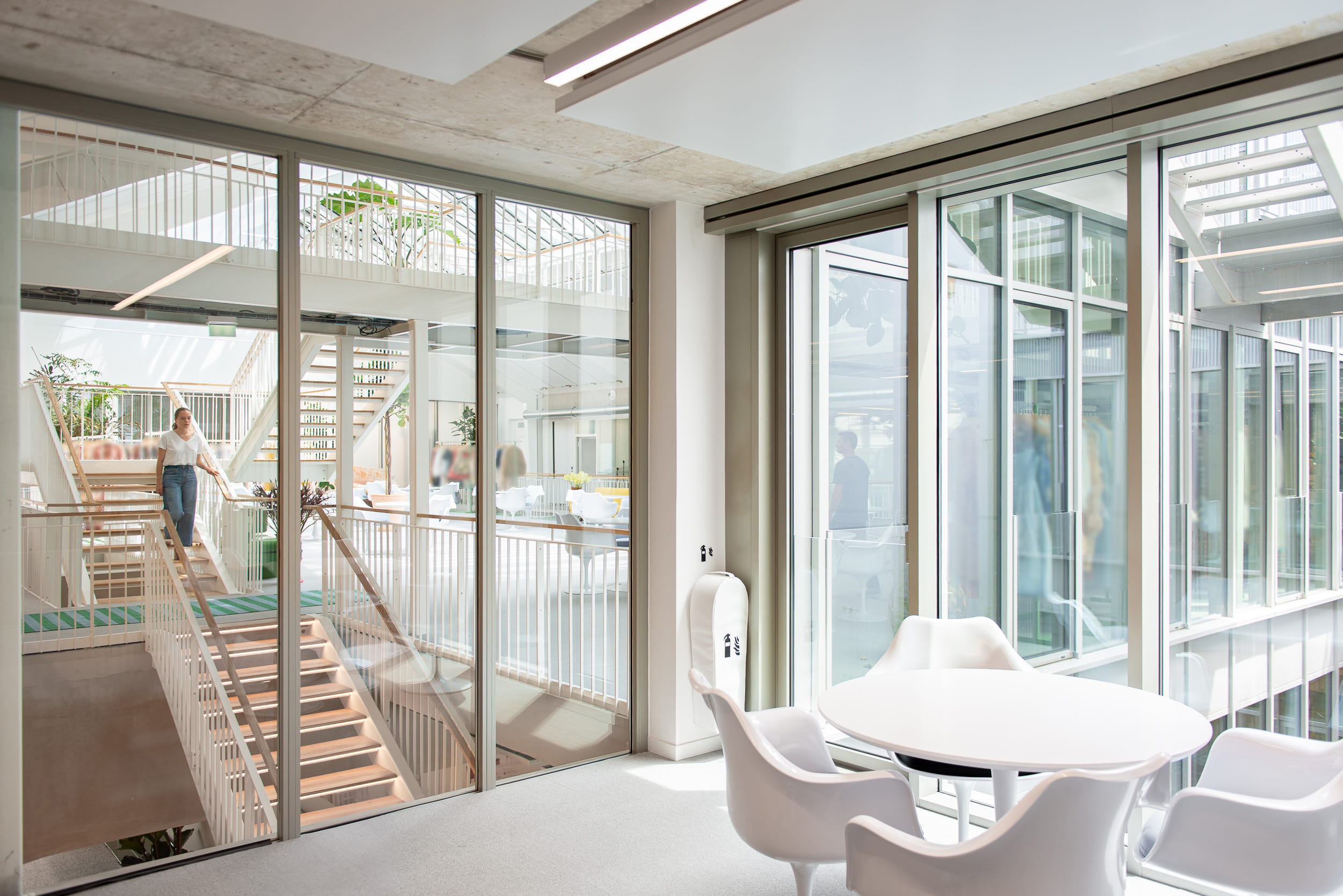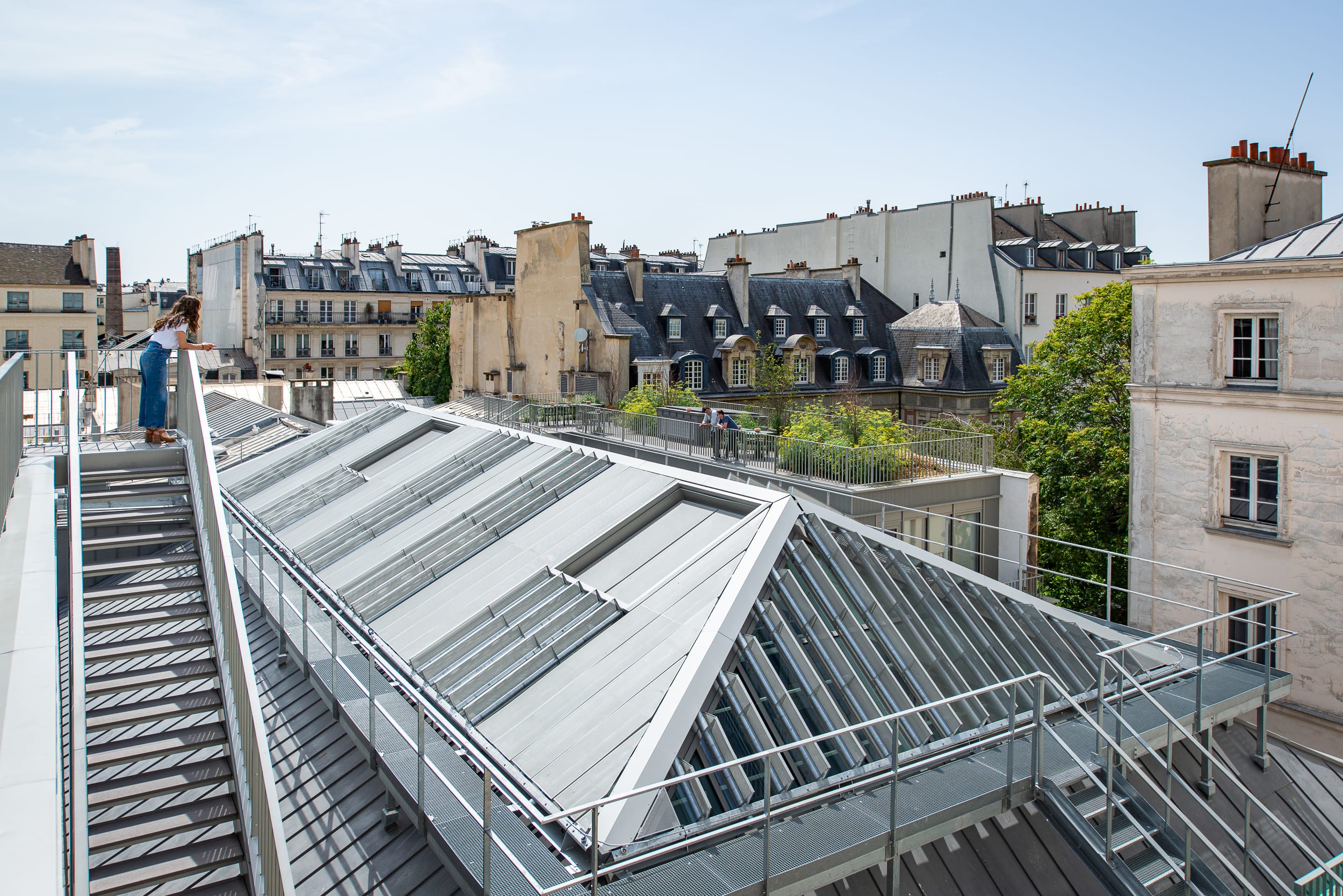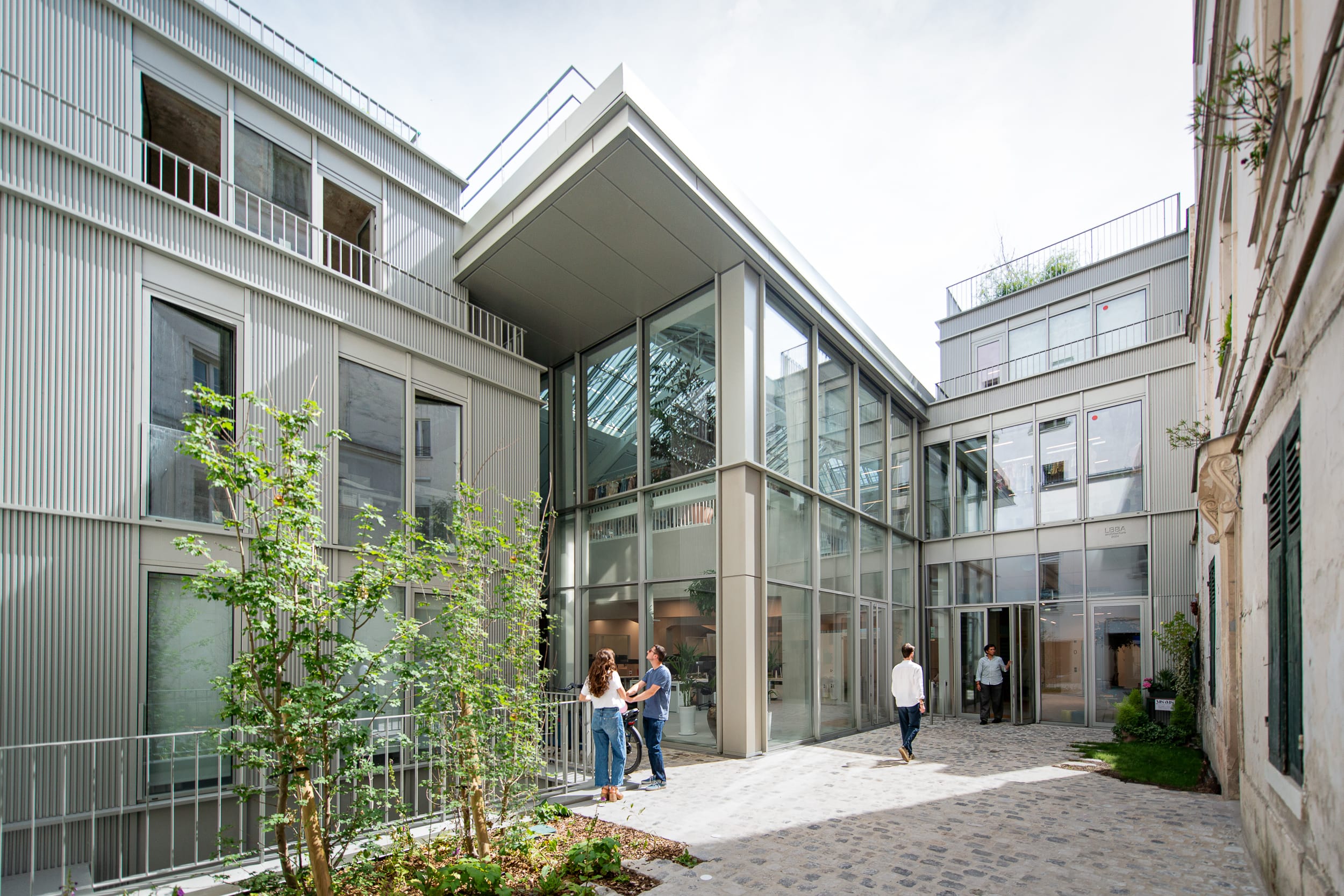 La végétalisation agit comme catalyseur de cette reconversion : les patios créés en pleine terre et l’ensemble des toitures terrasses deviennent des jardins, supports de biodiversité et apports de fraicheur pour les usagers et les avoisinants.